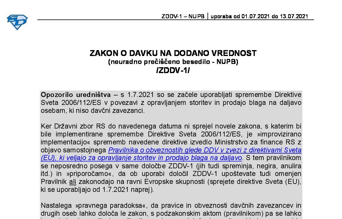 ZAKON O DAVKU NA DODANO VREDNOST (ZDDV-1 - neuradno prečiščeno besedilo) 06.12.2023 [!] 31.12.2023 05.12.2023
