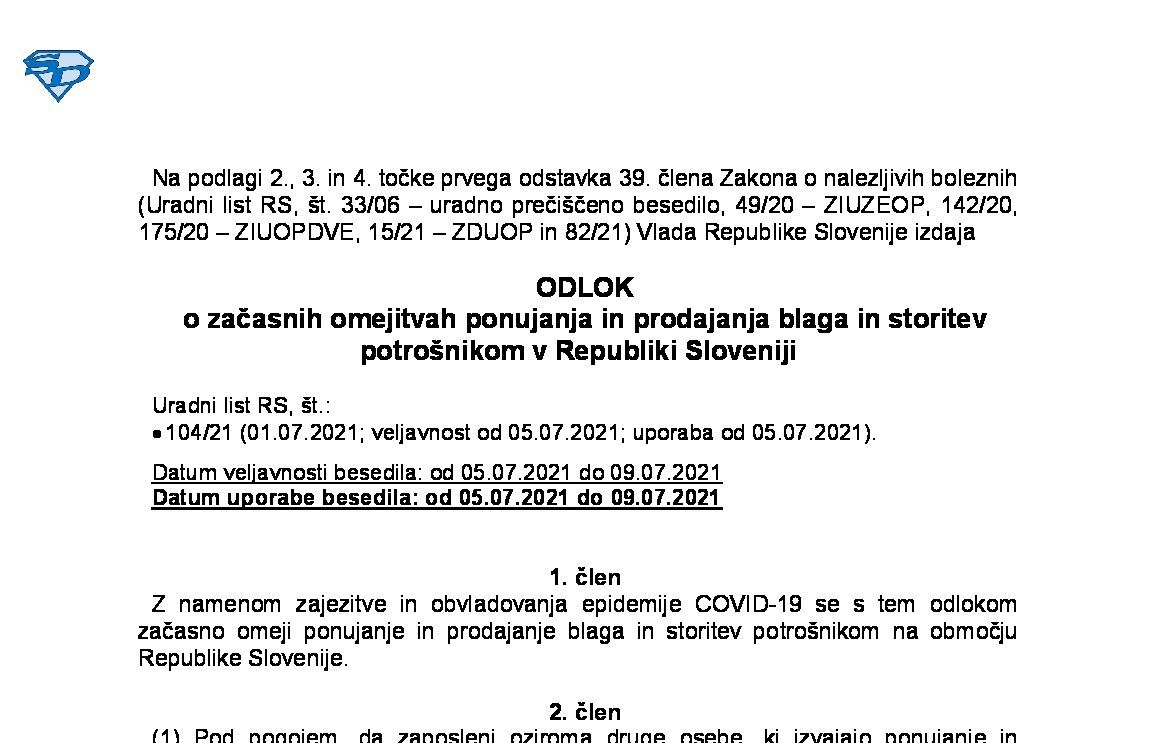 Sklep o uporabi ukrepov, ki jih določa Zakon o nalezljivih boleznih, pri nalezljivi bolezni COVID-19 04.09.2020 04.09.2020