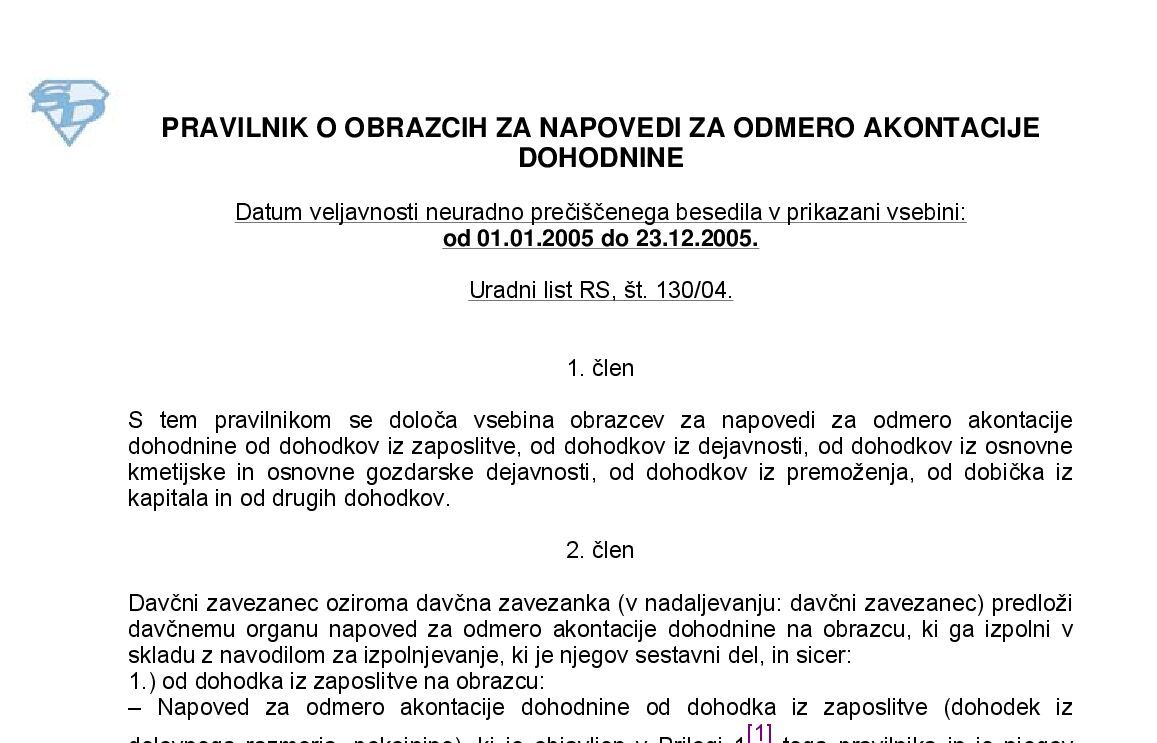 Pravilnik o vsebini in obliki obračuna davčnih odtegljajev ("REK obrazci" - neuradno prečiščeno besedilo) 01.07.2025 [!] 26.05.2025