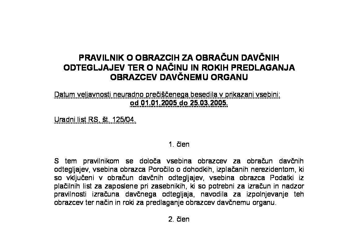 Pravilnik o obrazcih za napovedi za odmero akontacije dohodnine ter obrazcih za napovedi za odmero dohodnine od dohodka iz kapitala in dohodka iz oddajanja premoženja v najem (NUPB - neuradno prečiščeno besedilo) 20.12.2025 [!] 23.12.2025
