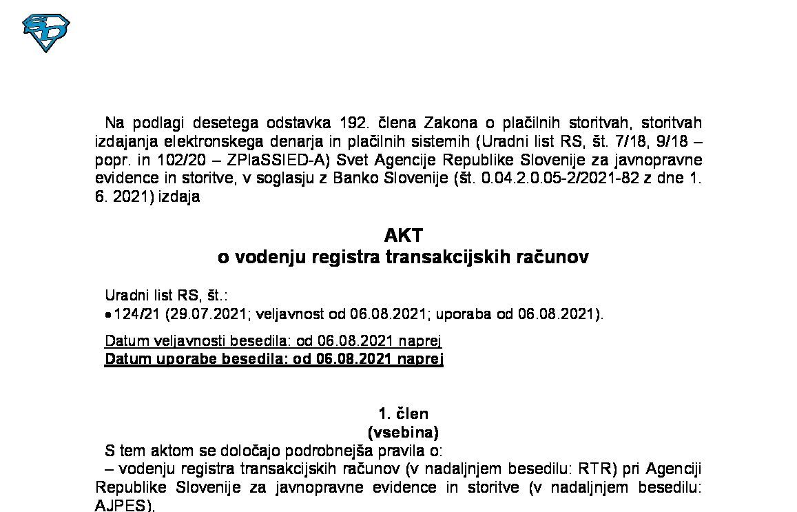 Akt o vodenju registra transakcijskih računov 01.07.2018 [!] 05.08.2021 22.06.2018