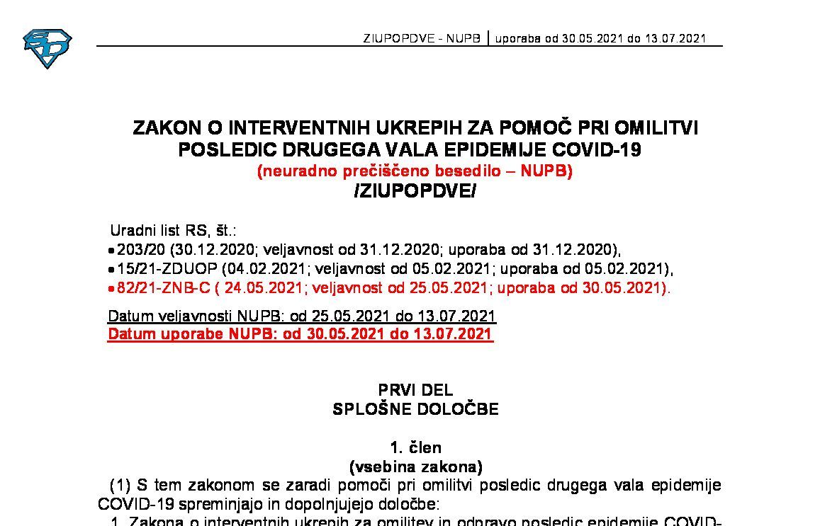ZAKON O INTERVENTNIH UKREPIH ZA POMOČ PRI OMILITVI POSLEDIC DRUGEGA VALA EPIDEMIJE COVID-19 (ZIUPOPDVE - neuradno prečiščeno besedilo) 31.12.2023 16.02.2024