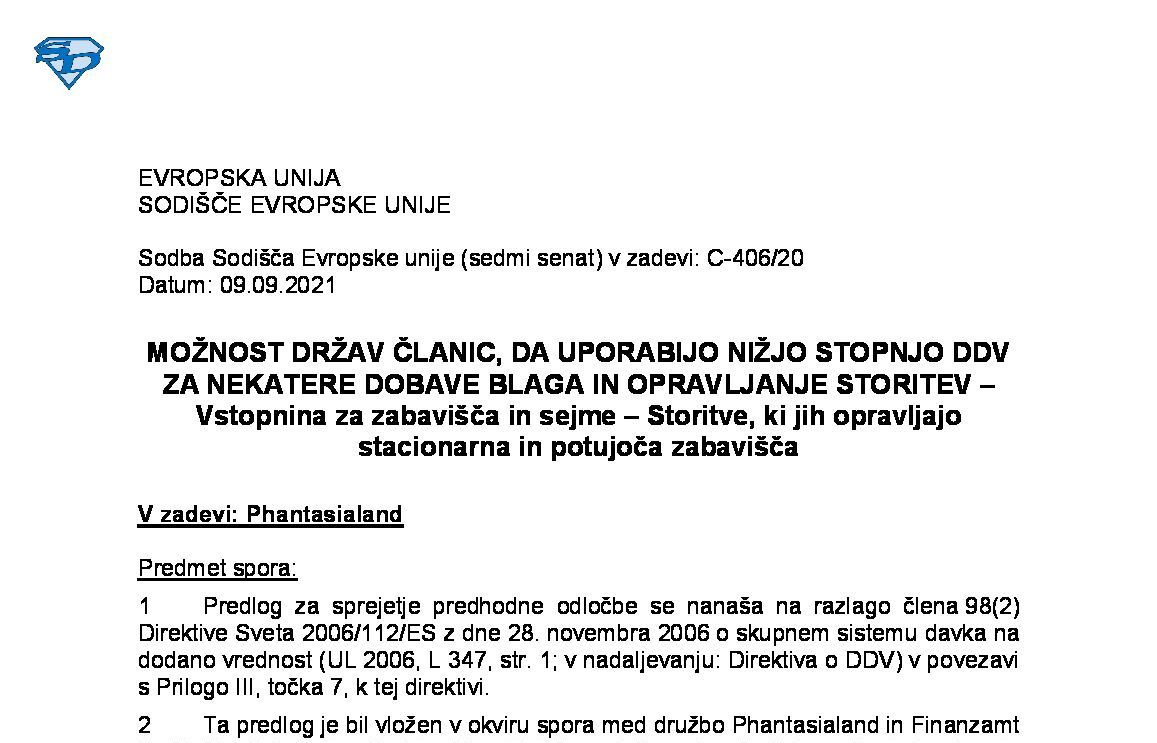 VRAČILO DDV DAVČNIM ZAVEZANCEM, KI NIMAJO SEDEŽA V DRŽAVI ČLANICI VRAČILA – GLAVNA IN POMOŽNA STORITEV – UMETNA DELITEV ENOTNE STORITVE – Neobstoj premestitve predmeta dobave (C-234/24) 23.10.2025 24.10.2025