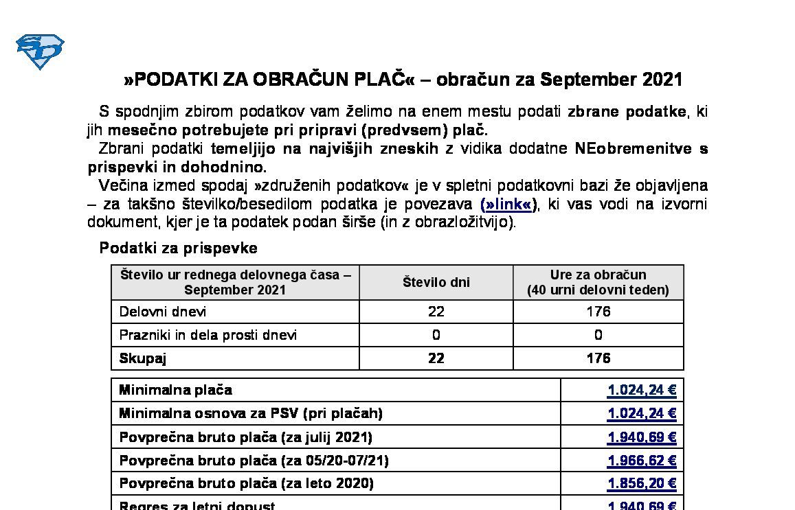 PODATKI ZA OBRAČUN PLAČ – obračun za SEPTEMBER 2025 22.09.2025
