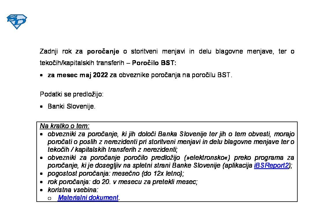 Poročanje Banki Slovenije - poročilo o prejetih in danih kreditih ter depozitih z nerezidenti - KRD 2026-12-20 00:00:00