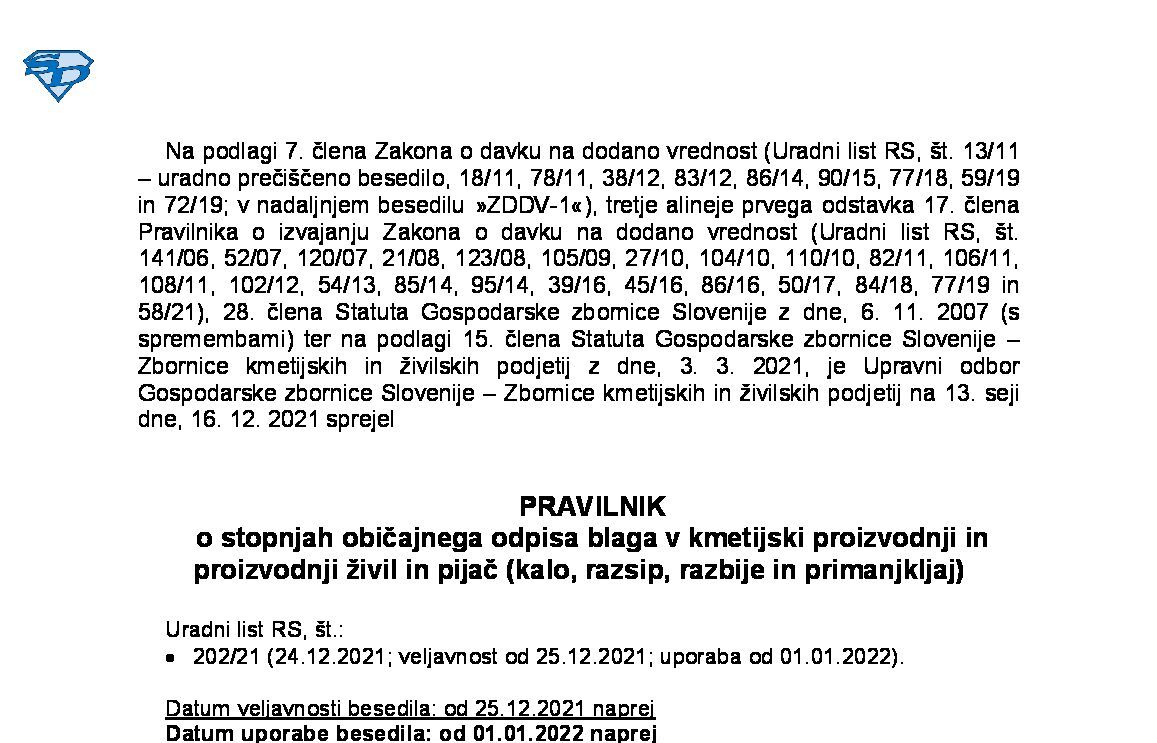 Pravilnik o stopnjah običajnega odpisa, primanjkljaja in uničenja blaga (kalo, razsip, razbitje in okvara), ki sta neločljivo povezana s skladiščenjem in prevozom blaga - GZS - TEKSTILNA, OBLAČILNA IN USNJARSKOPREDELOVALNA INDUSTRIJA 24.01.2009 20.01.2009