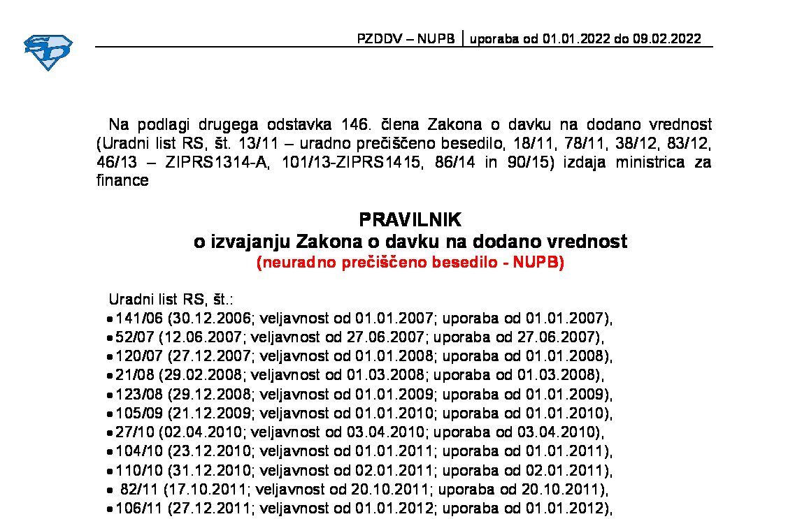 Pravilnik o izvajanju Zakona o davku na dodano vrednost (PZDDV - neuradno prečiščeno besedilo) 01.01.2025 [!] 30.12.2024