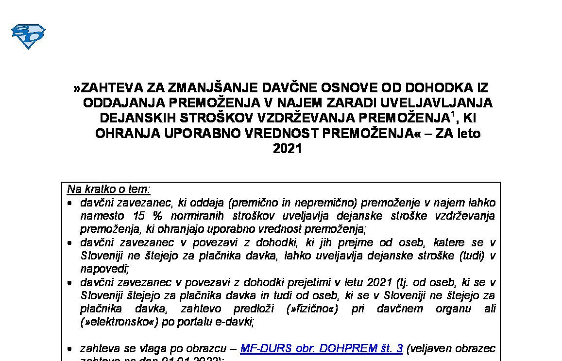 VLOGA ZA ZMANJŠANJE DAVČNE OSNOVE OD DOHODKA IZ DRUGEGA POGODBENEGA RAZMERJA ZARADI UVELJAVLJANJA DEJANSKIH STROŠKOV (DEJstr) – ZA leto 2025 21.01.2026