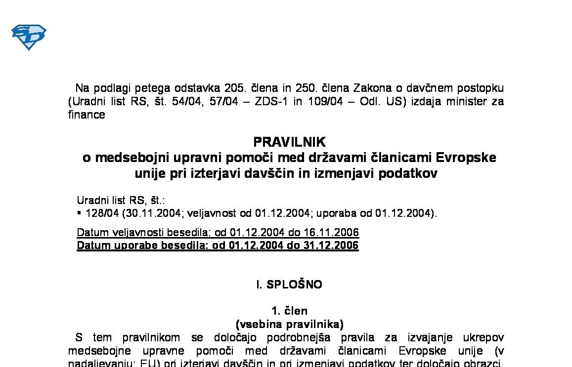 Pravilnik o dostavi podatkov v zvezi s posebno davčno obravnavo dohodkov za delavce inovativnih zagonskih podjetij 01.01.2025 [!] 20.10.2025