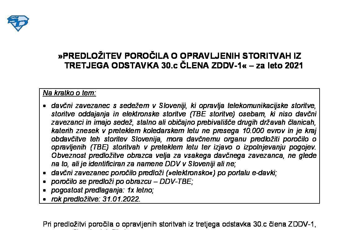 PREDLOŽITEV POROČILA O DOBAVI BLAGA ALI STORITEV PO 76.A ČLENU ZDDV-1 - leto 2026 04.12.2025