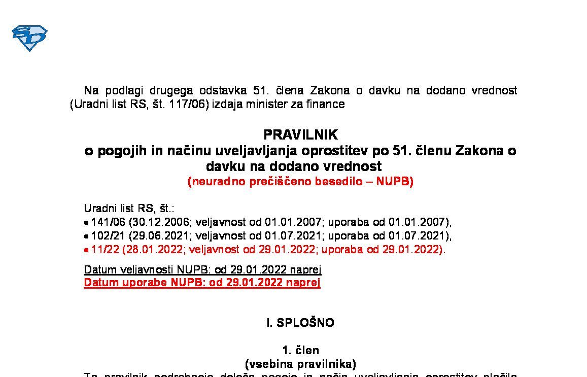 Pravilnik o izvajanju Zakona o davku na dodano vrednost (PZDDV - neuradno prečiščeno besedilo) 01.01.2025 [!] 30.12.2024