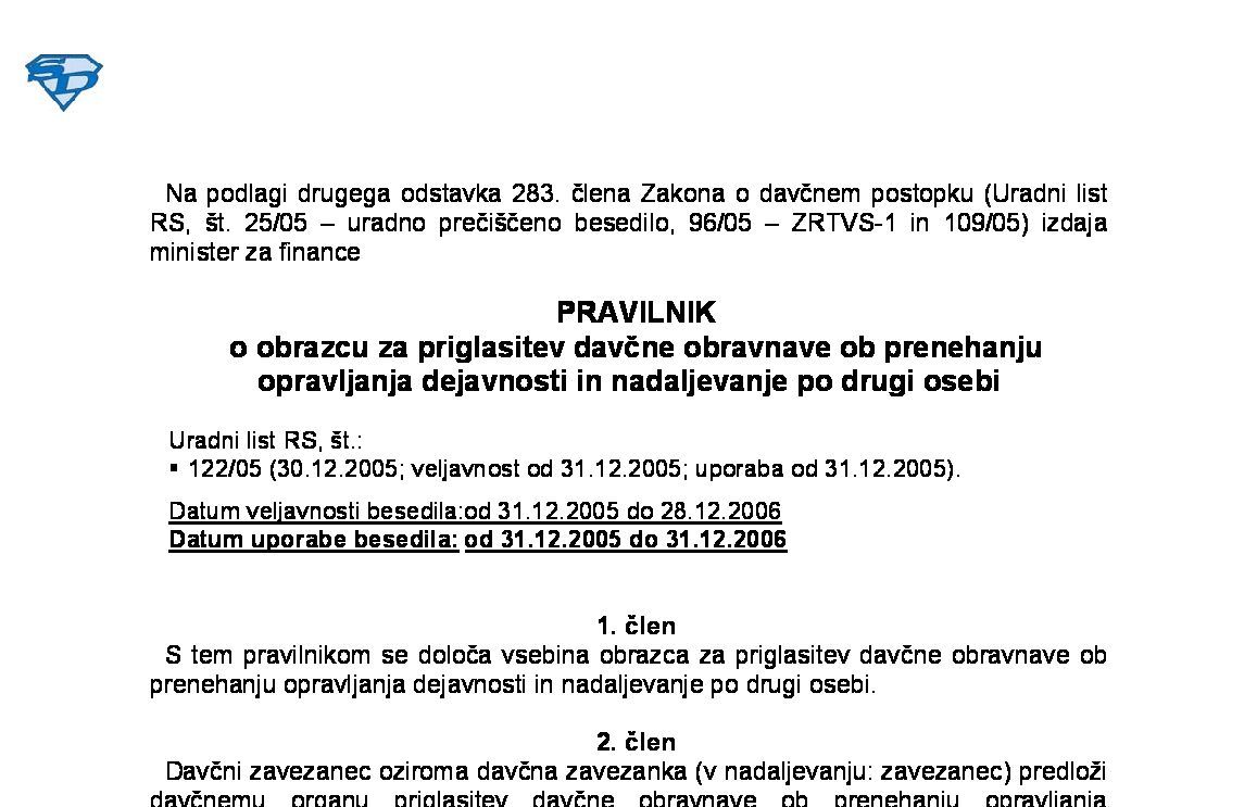 Članek nima posebnosti! Priloga - Priglasitev davčne obravnave ob prenehanju opravljanja dejavnosti in nadaljevanje po drugi osebi (obrazec + navodila).pdf