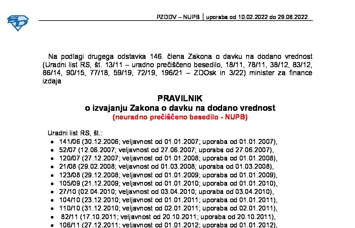 Pravilnik o izvajanju Zakona o davku na dodano vrednost (PZDDV - neuradno prečiščeno besedilo) 01.01.2025 [!] 30.12.2024