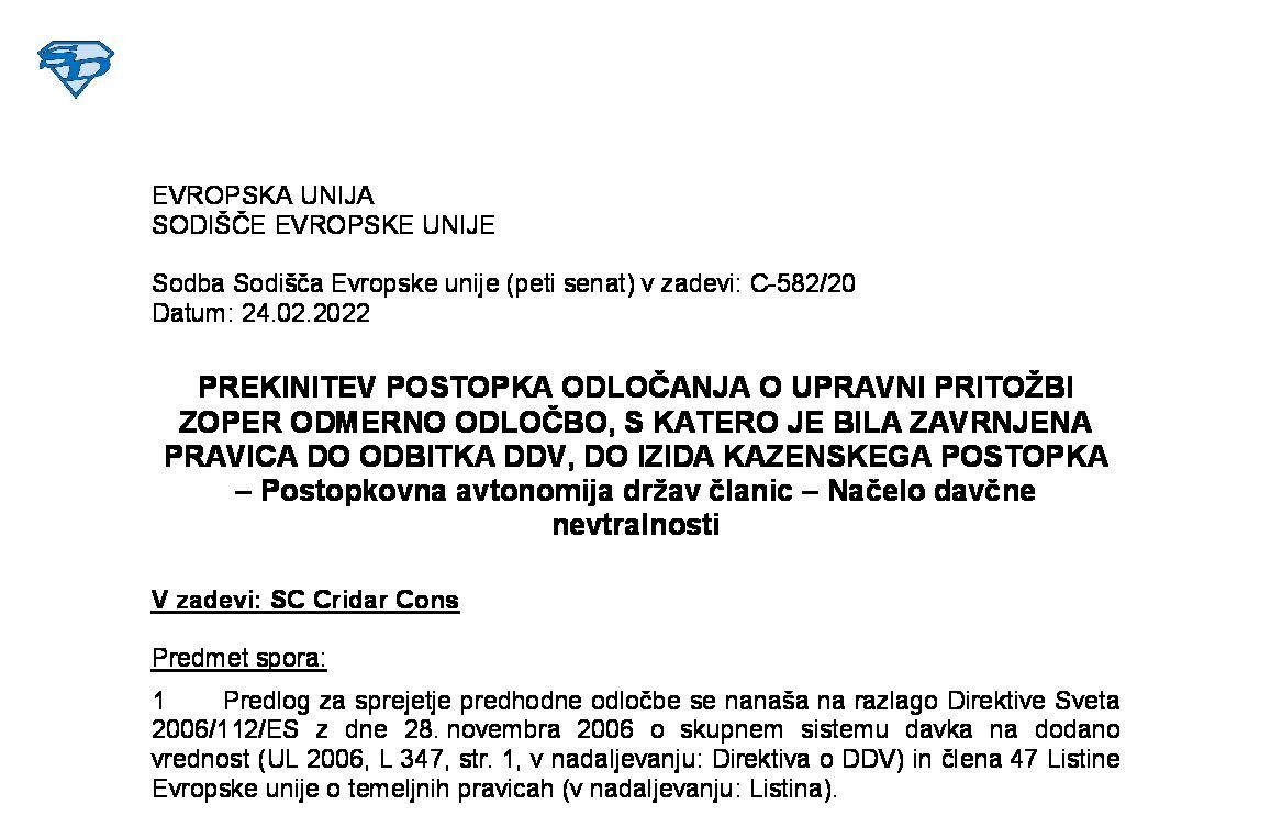 SOLIDARNA ODGOVORNOST – INSOLVENTNOST GLAVNEGA DOLŽNIKA – Ohranitev obveznosti plačila DDV – Solidarna odgovornost tretje osebe po izbrisu glavnega dolžnika iz poslovnega registra (C-121/24) 11.12.2025 12.12.2025