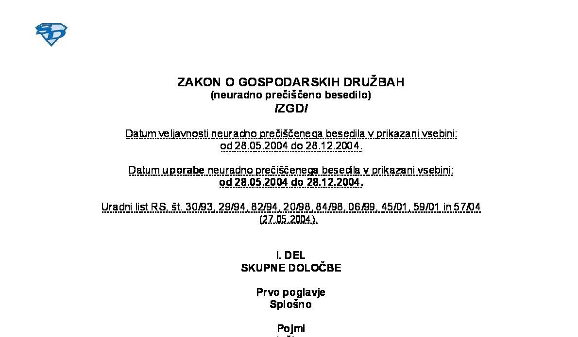 | ZAKON O GOSPODARSKIH DRUŽBAH (ZGD-1 - neuradno prečiščeno besedilo) | 08.10.2025 | [!] | 08.10.2025 | |