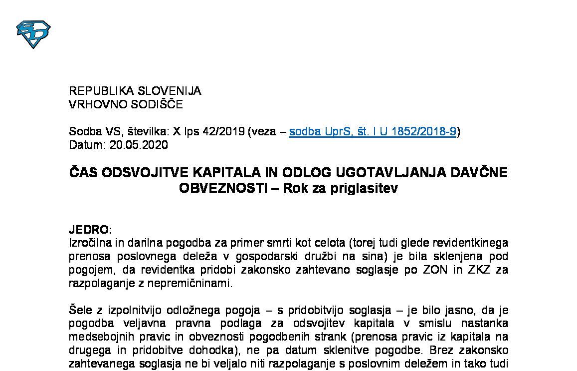 ODLOG UGOTAVLJANJA DAVČNE OBVEZNOSTI – Samoprijava (X Ips 31/2023) 02.10.2024 06.11.2024
