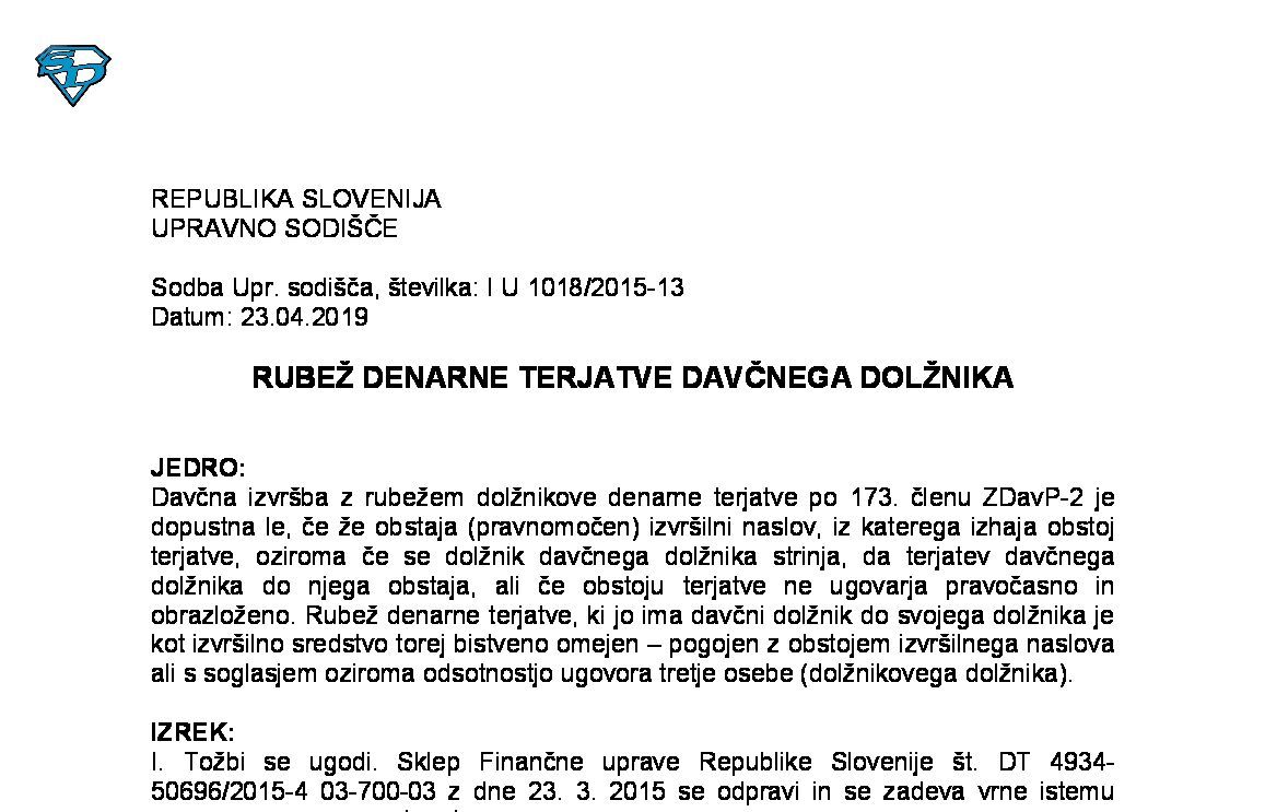 ODLOŽITEV IZVRŠBE ODLOČBE FURS – Neposredna grožnja nelikvidnosti, plačilne nesposobnosti in kapitalske neustreznosti (I U 938/2025-4) 10.06.2025 09.12.2025