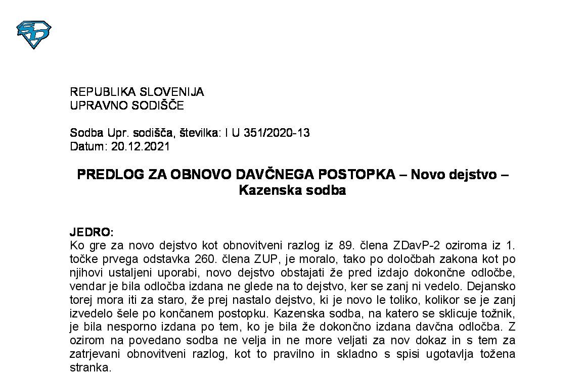 VRAČILO PLAČANIH DAJATEV PO DAVČNEM OBRAČUNU IZ POSTOPKA DIN (IV U 124/2022-15) 10.03.2025 12.09.2025
