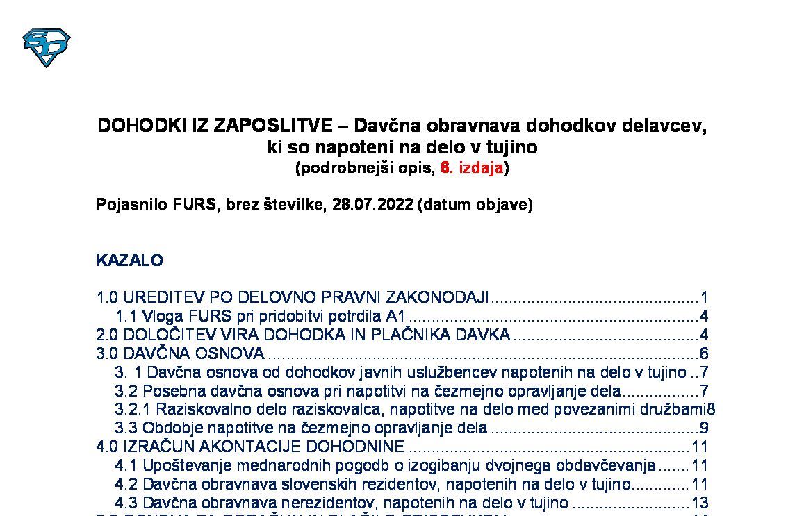 MEDNARODNO OBDAVČENJE – Obdavčenje dohodkov iz zaposlitve po mednarodnih pogodbah (podrobnejši opis, 3. izdaja) 19.11.2025 24.11.2025