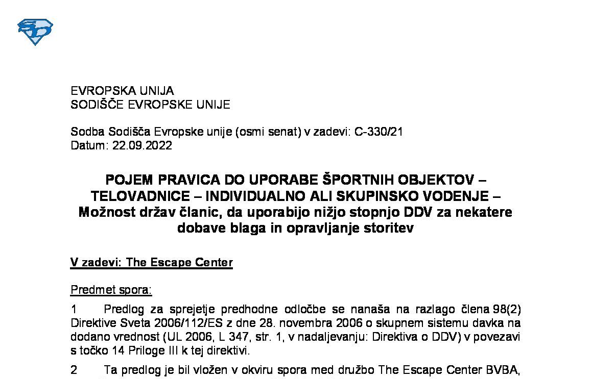 VRAČILO DDV DAVČNIM ZAVEZANCEM, KI NIMAJO SEDEŽA V DRŽAVI ČLANICI VRAČILA – GLAVNA IN POMOŽNA STORITEV – UMETNA DELITEV ENOTNE STORITVE – Neobstoj premestitve predmeta dobave (C-234/24) 23.10.2025 24.10.2025