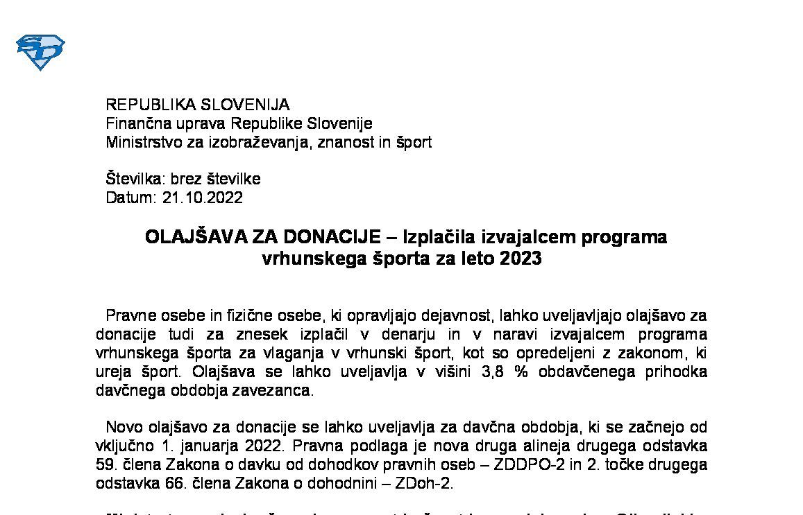 | Evidenca društev z vrhunskimi športniki - za leto 2022 | 01.01.2022 | 31.12.2022 | 09.05.2022 | |
