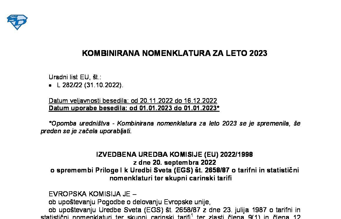 Opomba: Kombinirana nomenklatura za leto 2023 se je spremenila, še preden se je začela uporabljati.