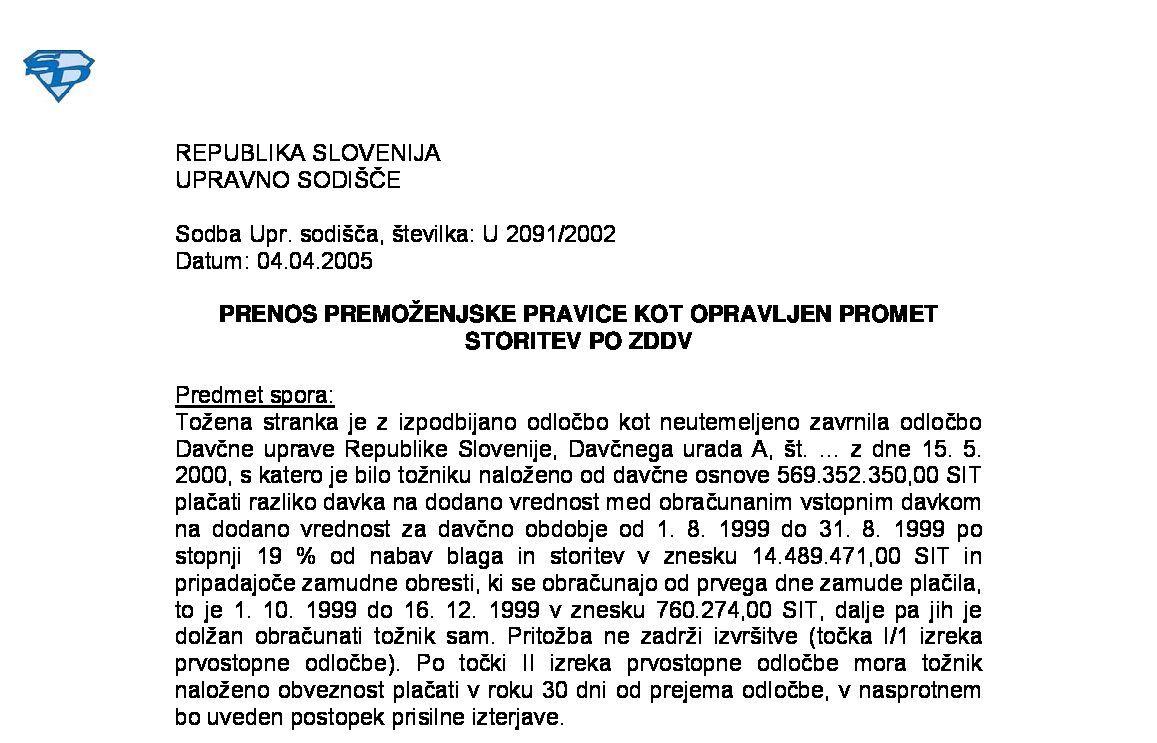 IZPOLNJEVANJE POGOJEV ZA DOBAVO BLAGA ZNOTRAJ UNIJE, OPROŠČENO PLAČILA DDV NA PODLAGI 46. ČLENA ZDDV-1 – Nepopolne CMR listine (I U 1704/2021-38) 27.11.2024 15.10.2025