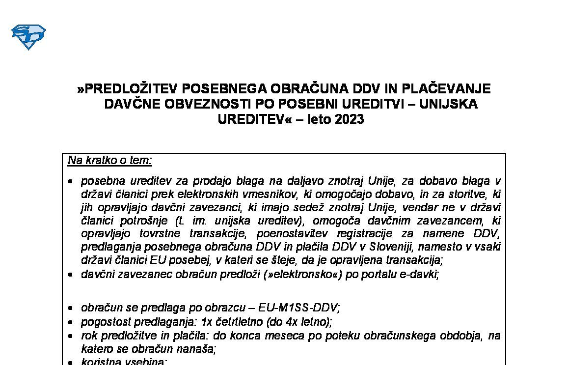IZDAJA RAČUNA ZA TRANSAKCIJE ZNOTRAJ UNIJE - leto 2026 02.12.2025