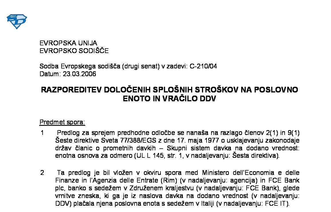 VRAČILO DDV DAVČNIM ZAVEZANCEM, KI NIMAJO SEDEŽA V DRŽAVI ČLANICI VRAČILA – GLAVNA IN POMOŽNA STORITEV – UMETNA DELITEV ENOTNE STORITVE – Neobstoj premestitve predmeta dobave (C-234/24) 23.10.2025 24.10.2025