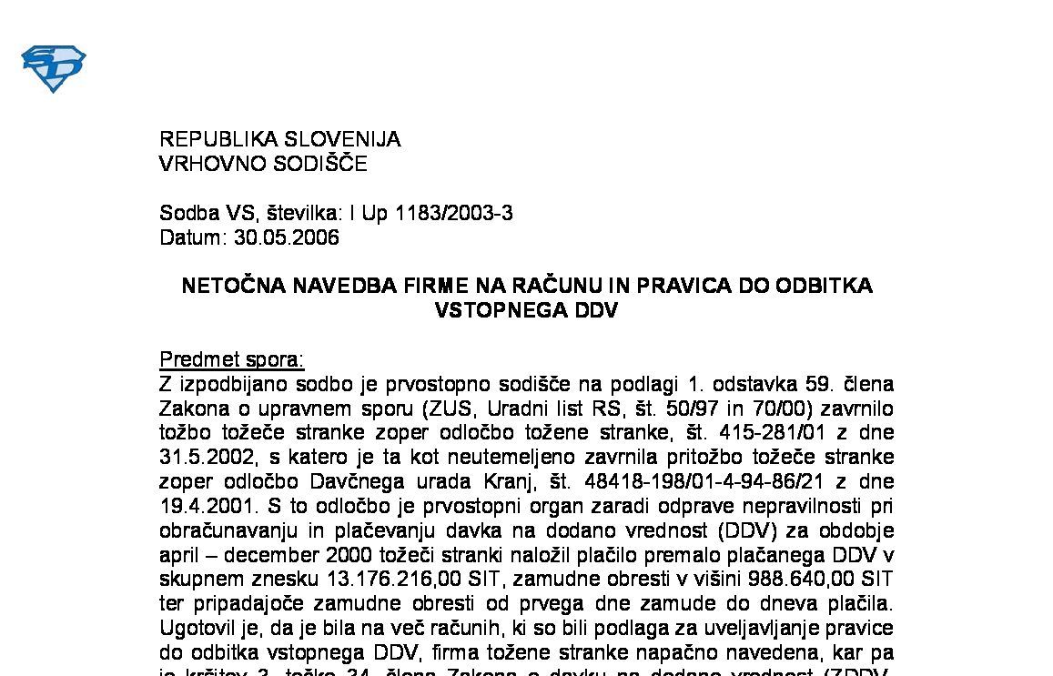 IZDANI RAČUNI ZA OPRAVLJENE POSLOVODNE STORITVE Z OBRAČUNANIM DDV – Pravica do odbitka DDV – Načelo nevtralnosti (X Ips 41/2023) 24.03.2025 28.08.2025