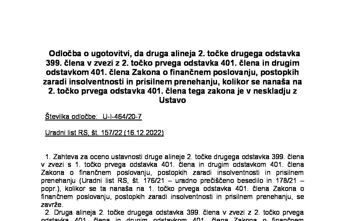 Odločba Ustavnega sodišča - 221.i člen ZFPPIPP (27.03.2023) 02.03.2023 28.03.2023