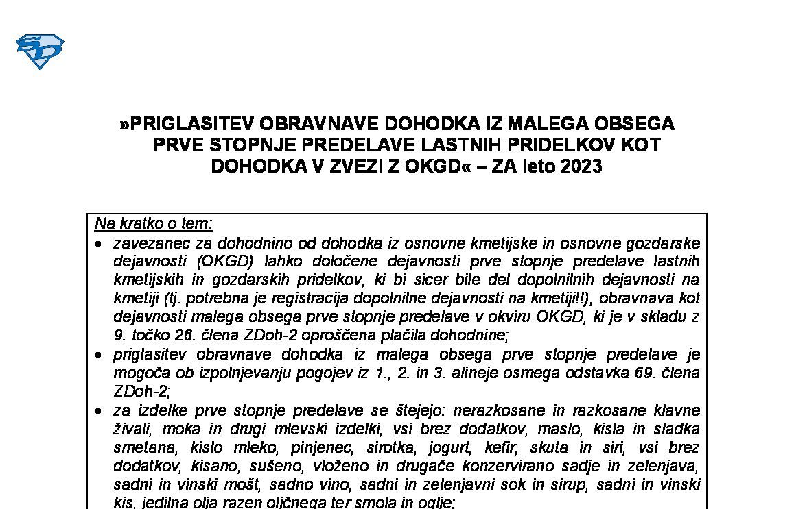 NAPOVED ZA ODMERO DAVKA OD DOBIČKA OD ODSVOJITVE IZVEDENIH FINANČNIH INSTRUMENTOV (DDOIFI) - ZA leto 2024 29.01.2025