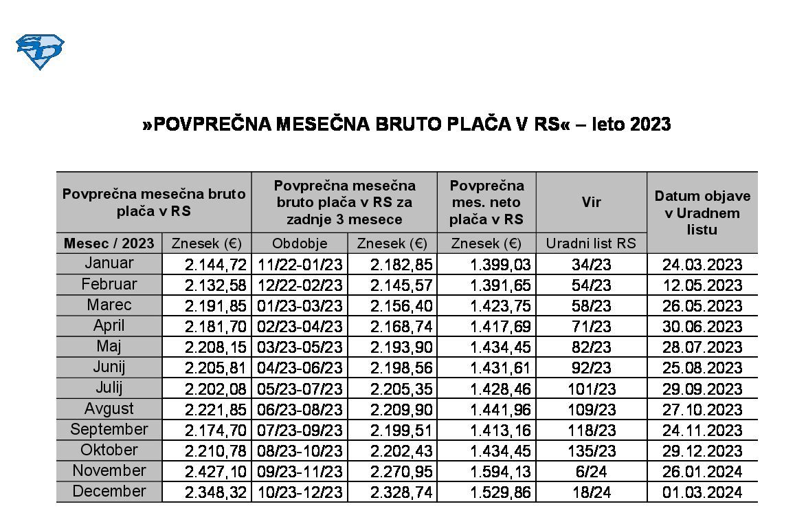 POVPREČNA MESEČNA BRUTO PLAČA V RS - leto 2003 25.02.2004