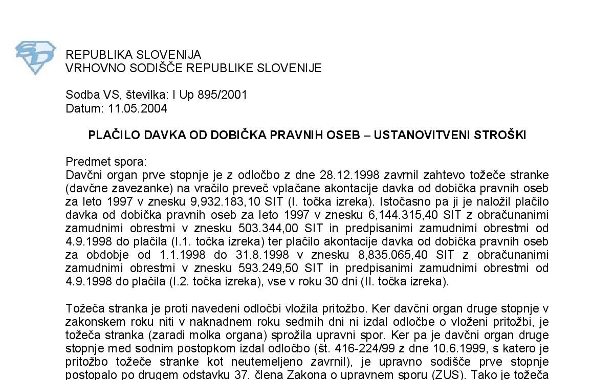 UPORABA RAZVELJAVLJENEGA 1. ODSTAVKA 12. ČLENA ZDDPO (I Up 997/99-5) 02.12.2003 27.09.2004