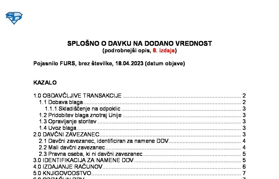EVIDENCI OBRAČUNANEGA DDV IN ODBITKA DDV TER PREDIZPOLNITEV OBRAČUNA DDV (podrobnejši opis, 18. izdaja) 01.12.2025 01.12.2025