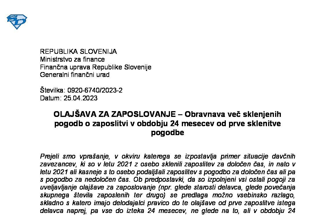 UVELJAVLJANJE OLAJŠAVE V SKLADU S 63. ČLENOM ZDoh-2 07.09.2007 13.11.2007