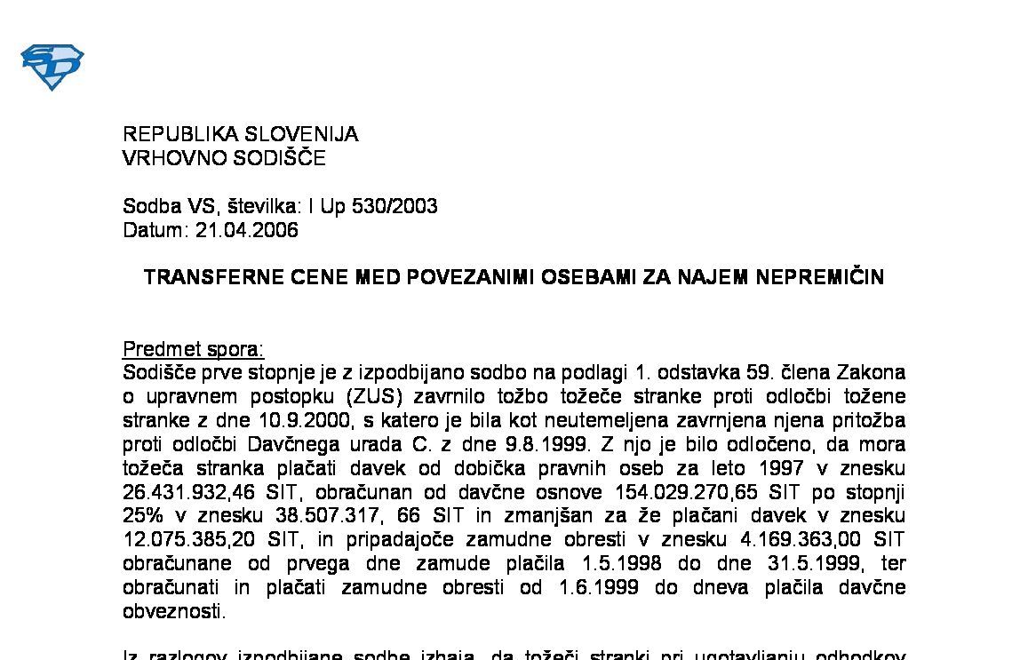 TRANSFERNE CENE MED POVEZANIMI OSEBAMI – Obresti od (presežka) posojil – Dokazovanje – Patronatska izjava (X Ips 74/2020) 09.03.2022 05.05.2022