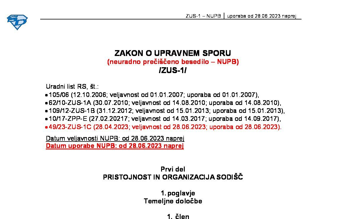 ZAKON O UPRAVNEM SPORU (ZUS-1 - neuradno prečiščeno besedilo) 14.09.2017 27.06.2023 08.05.2023