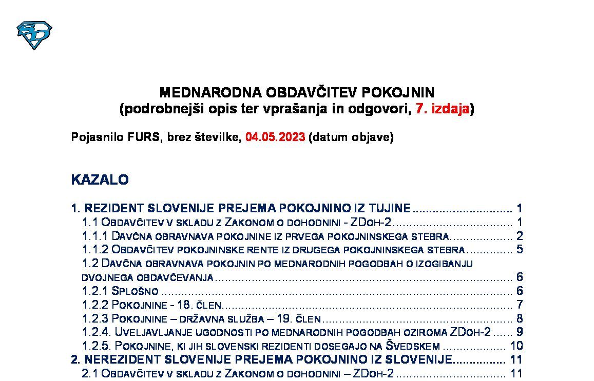 MEDNARODNO OBDAVČENJE – Obdavčenje dohodkov iz zaposlitve po mednarodnih pogodbah (podrobnejši opis, 3. izdaja) 19.11.2025 24.11.2025
