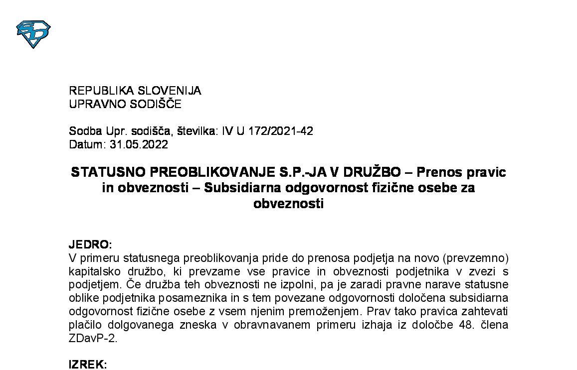 ODLOŽITEV IZVRŠBE ODLOČBE FURS – Neposredna grožnja nelikvidnosti, plačilne nesposobnosti in kapitalske neustreznosti (I U 938/2025-4) 10.06.2025 09.12.2025