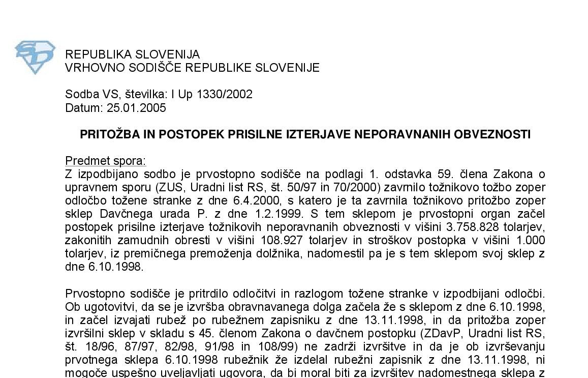 ODLOG UGOTAVLJANJA DAVČNE OBVEZNOSTI – Samoprijava (X Ips 31/2023) 02.10.2024 06.11.2024