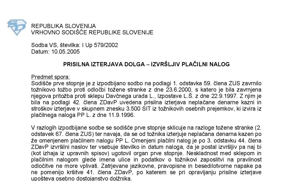 ODLOG UGOTAVLJANJA DAVČNE OBVEZNOSTI – Samoprijava (X Ips 3/2024) 02.10.2024 05.11.2024