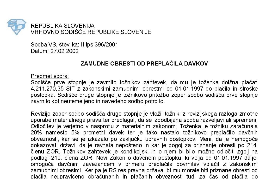 OBRAČUNAVANJE OBRESTI V POSTOPKU DAVČNEGA NADZORA (X Ips 123/2020) 28.08.2024 15.10.2024