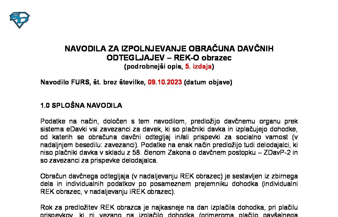 NAVODILA ZA IZPOLNJEVANJE OBRAČUNA DAVČNIH ODTEGLJAJEV – REK-O in REK-1b obrazec (podrobnejši opis, 13. izdaja) 24.11.2025 25.11.2025
