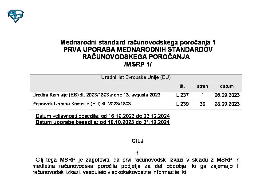 01. MSRP 1 - Prva uporaba Mednarodnih standardov računovodskega poročanja (NUPB - neuradno prečiščeno besedilo) 01.01.2026 [!] 14.07.2025