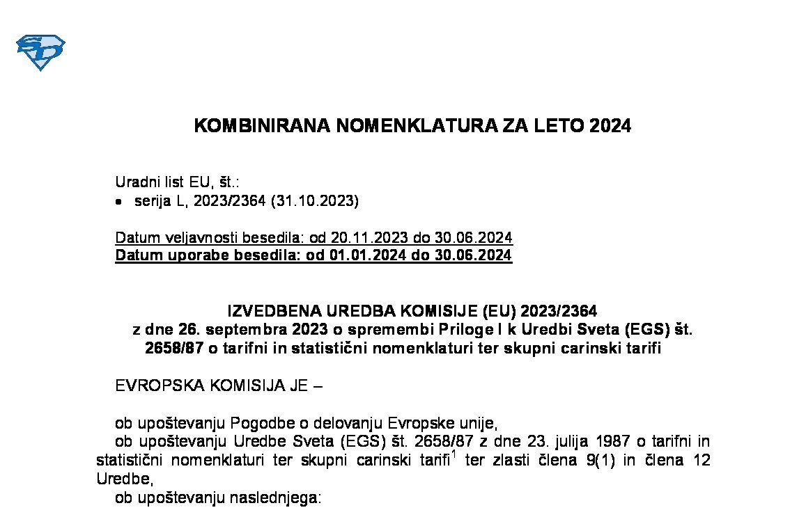 Kombinirana nomenklatura za leto 2025 01.01.2025 31.12.2025 05.11.2024