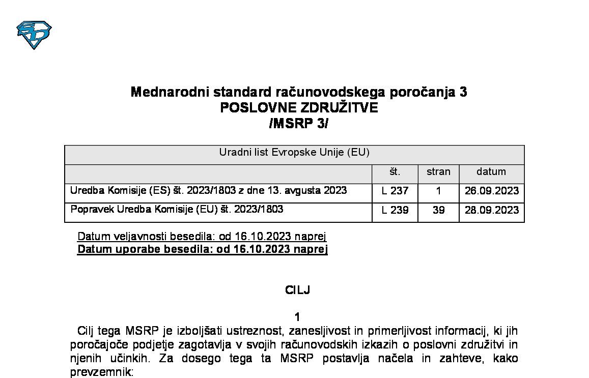 | 01. MSRP 1 - Prva uporaba Mednarodnih standardov računovodskega poročanja (NUPB - neuradno prečiščeno besedilo) | 01.01.2026 | [!] | 14.07.2025 | |