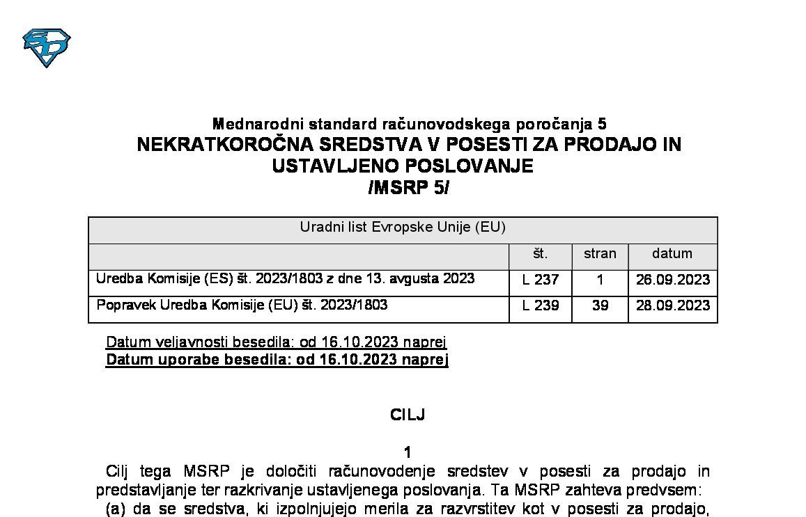 | 01. MSRP 1 - Prva uporaba Mednarodnih standardov računovodskega poročanja (NUPB - neuradno prečiščeno besedilo) | 01.01.2026 | [!] | 14.07.2025 | |