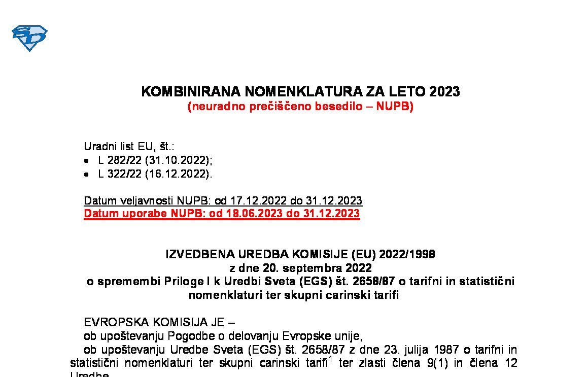 Članek nima posebnosti! IZVEDBENA UREDBA KOMISIJE (EU) 2022/1998 z dne 20. septembra 2022 o spremembi Priloge I k Uredbi Sveta (EGS) št. 2658/87 o tarifni in statistični nomenklaturi ter skupni carinski tarifi.pdf