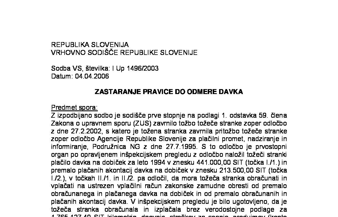 OBRAČUNAVANJE OBRESTI V POSTOPKU DAVČNEGA NADZORA (X Ips 123/2020) 28.08.2024 15.10.2024
